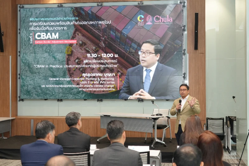 ทั้งนี้คุณเดชาคมได้ร่วมแบ่งปันประสบการณ์ให้แก่ผู้เข้าร่วมกิจกรรมดังกล่าวว่าที่ผ่านมาบริษัทฯ ได้มีโอกาสเข้าร่วมโครงการนี้เมื่อ 2 ปีที่แล้ว ทำให้มีความเข้าใจและนำความรู้ไปประยุกต์ใช้งานกับการทำงานมากยิ่งขึ้น นอกจากนี้หลังจากจัดทำรายงานเพื่อรับมือกับมาตรการ CBAM ทำให้ได้เรียนรู้ว่าการรับมือกับ CBAM ไม่สามารถทำได้คนเดียว จำเป็นต้องมีการพูดคุยกับ Supply Chain จากต้นน้ำไปยังปลายน้ำ รวมถึงต้องทำความเข้าใจคู่แข่งด้วย โดย CBAM นับเป็นมาตรการสำคัญที่ส่งผลกระทบต่อหลายอุตสาหกรรม โดยเฉพาะบริษัทที่มีการส่งออกไปยังตลาดยุโรป ด้วยเหตุนี้จึงเป็นสิ่งที่หลีกเลี่ยงไม่ได้และทวีความสำคัญมากยิ่งขึ้นในอนาคต ดังนั้นความร่วมมือจากทุกฝ่ายจึงเป็นเรื่องสำคัญ เพราะนอกจากจะเป็นการปรับเปลี่ยนเพื่อลดการปล่อยก๊าซเรือนกระจกแล้ว ยังเป็นการช่วยรักษาและส่งต่อสิ่งแวดล้อมที่ดีให้แก่เยาวชนรุ่นต่อไปอีกด้วย